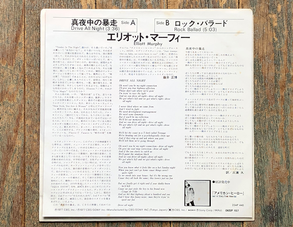 Elliott Murphy – Drive All Night(’77 CBS/Sony / Columbia)