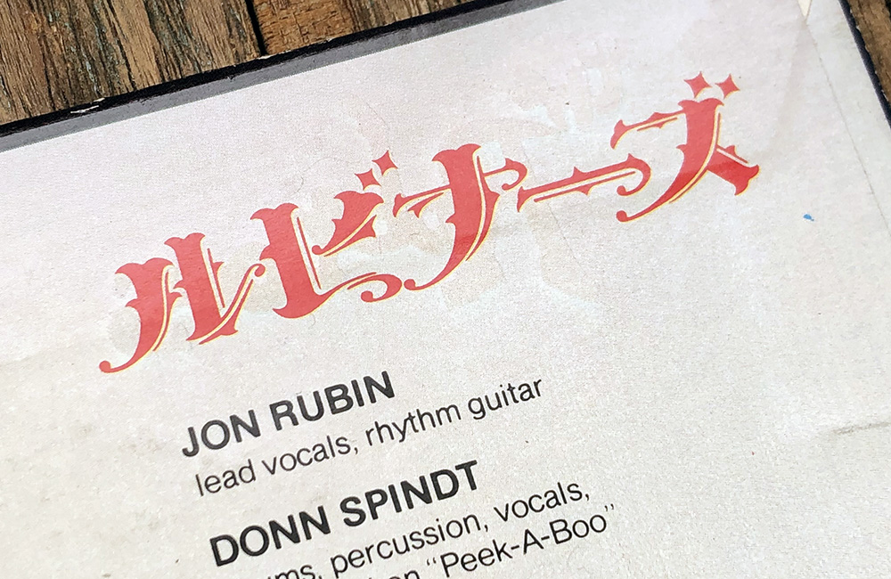 オリジナルは正面のガラスに描かれたThe Rubinoosの文字が反転して見えている絵なので