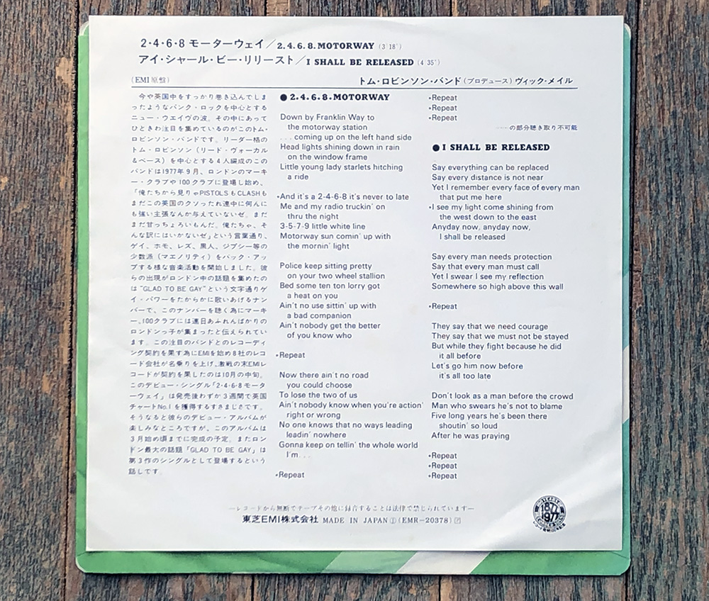 .    Tom Robinson Band – 2-4-6-8 Motorway / I Shall Be Released(’77 EMI)