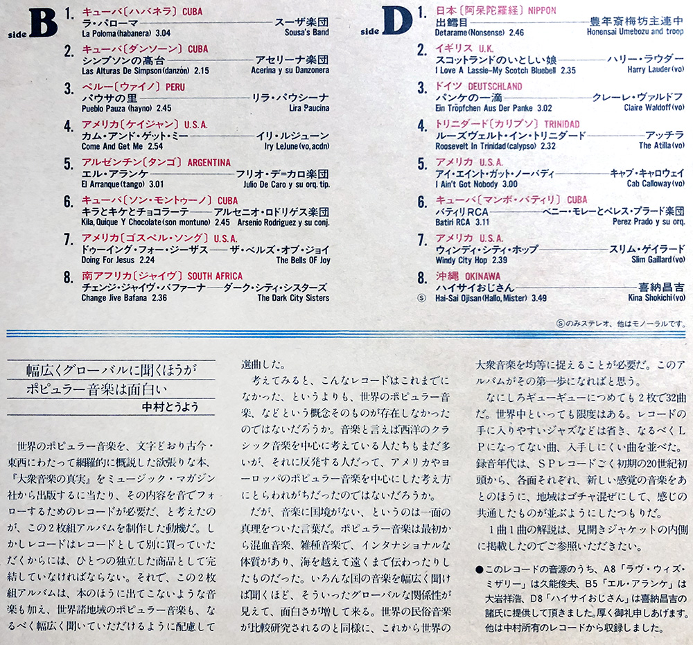 中村氏が『大衆音楽の真実』て本を著して副読本ならぬ副聴盤が必要と云う事でコンパイルされた